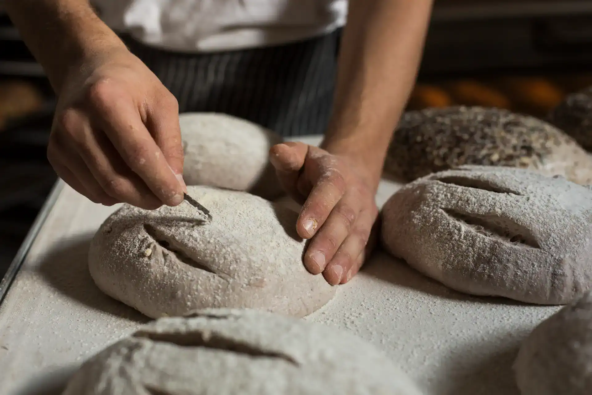 אנחנו מאמינים שלחם טוב מתחיל בפשטות. לכן אנו אופים ללא משפרי אפייה, ללא תוספים מלאכותיים וללא קיצורי דרך. רק קמח, מים, מלח ומחמצת חיה. הזמן והסבלנות עושים את השאר, ויוצרים לחם עמוק, בריא ומלא אופי.